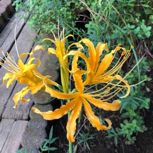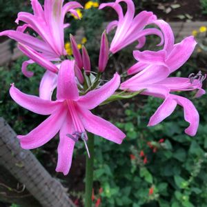 引っ越ししたネリネが沢山葉を出したので期待していたのに、咲いたのは一輪だけ。 一点豪華主義。