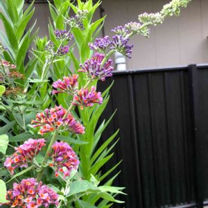 蝶🦋がたくさん来る庭を作るオーレリアン達はブッドレアを植える。と聞いて、苗を探しました。 欲しかった濃いピンクは無く、この色に。 紫色の蕾がオレンジ色になるんだョ!と姉にpicを見せたら、腐っているみたいって、バッサリ❌ そんな言い方をしなくても😿