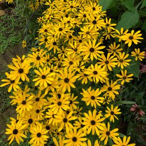 いつまでも降り続く雨に、庭の花達が咲きあぐねている中、へっちゃらさとでも言うようにこのルドベキアだけは黄色く輝いています。