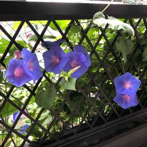 みどりのカーテンにしている琉球朝顔が本格的に咲き始め、ベランダの内側にも おはようー❗️って言われた気がした。