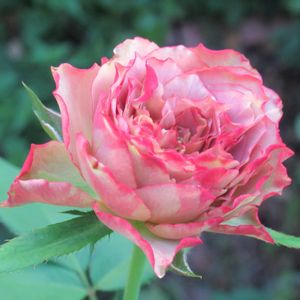 2年くらい前に買った苗です なんと今頃初開花😳 最初の年は小さすぎて 去年はずいぶん伸びたと思っていたら 伸びたのは台木からの枝💦 もうダメかな、と思っていたら咲きました 今年はハキリバチに水玉模様に葉を切り取られています 踏んだり蹴ったり