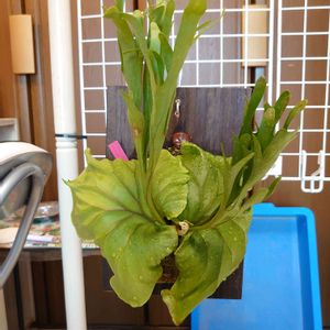 おはようございます😄 ビカクウォールの屋来杉君がVer2.0にアップグレードしました✨✌️ 大株になったスパーバムの重みで以前の棒状フックだと湾曲が見られたので、フック部を板状に変更ですね~😁✌️