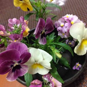 こんばんは(*^▽^*) 連休の中盤に 土岐の陶器市に行ってきました。 すごく便利なものを ゲット😄 丸く平べったい陶器に穴が 空いていて、お皿に沈めると 簡単にお花を挿せるんです❣️ 終わりかけのビオラと ネメシアを飾ってみました。