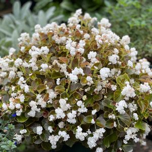 ベゴニアダブレットホワイト モリモリで、鉢サイズアップした方がいいのかしら?冬越しは?調べないと💦 にしてもよく夏を超えてくれた・・・ありがとう
