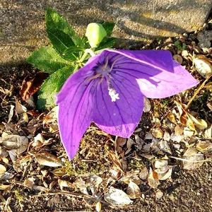 キキョウ、 コンクリートの隙間から発芽、小さな体なのに立派な花が、蕾もつけてます。 (ど根性桔梗?) 2021.9.25.朝