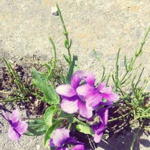 郵便局の駐車場にも スミレが咲いてました😄 コンクリの隙間から‥ アリアケスミレ ですよね?