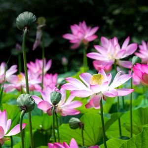 横浜市 四季の森公園の蓮田です。 蕾も上がっていますが、シャワーヘッドの方が多くなって来たので、ピークは過ぎたようです。