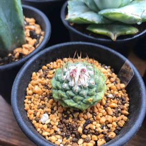 サボテン ストロンボカクタス 菊水 左側冬に日焼けした方の成長があまり見られないなぁ🤔 右側は9月ぐらいから成長した😊