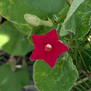 星形と座布団形⁉️ 今朝の散歩より 葉っぱは糸状の赤い花のルコウソウ(縷紅草)は、とても目立ちますね❗️ ⏬️ ヒルガオ科サツマイモ属の一年草 原産地>熱帯アメリカ 別名>カボチャアサガオ、サイプレスバイン 花言葉は「情熱」「常に愛らしい」「世話好き」「おせっかい」「私は忙しい」などとたくさん有りますね😀