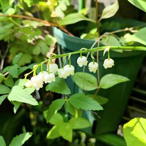 鉢植えのスズラン、買ってから何年経ったか忘れてしまいましたが…😅 忘れた頃になって初めて咲きました。 クンクン👃すると良い香りがします。