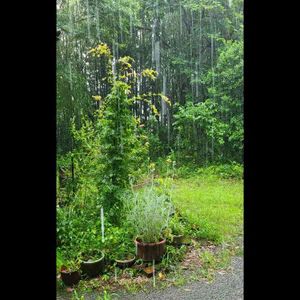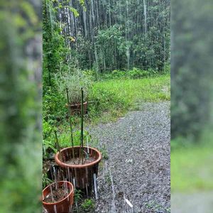 最初の大雨で枯らしてしまった鉢に またまた、雨が 叩きつける。