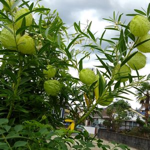 庭のふうせんとうわたとアメジストセージが高いところで、競い合ってます。😁