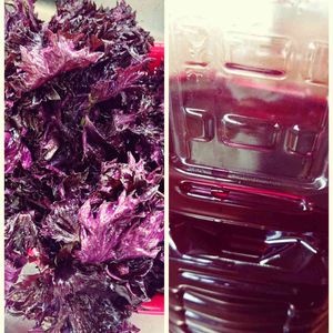 ご近所の方から赤しそドリンクを頂き、めちゃ美味しかったので自分でも作ってみることにしました✨ 何やら夏バテ予防にいいらしいです🎵 作り方も簡単でした✨
