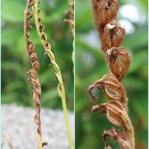 日本一有名な野生蘭の成れの果て ネジバナ(捩花) ラン科ネジバナ属の小型の多年草 💕💕💕💮💮💮💘💘💘 7/6に投稿した花のその後です。果実が割れて種を飛ばした後です。今年、初めて蘭の果実、種について知りました。ネジバナも同様でした。7/16 ホクリクムヨウラン、7/14 オニノヤガラと比べてみて下さい。先端が繋がったまま途中から割れて、ホコリの様に微小な種を風に乗せます。割れた隙間から向こうが見えます。そんな事を今年初めて知りました。 💕💕💕😃😃😃💘💘💘 この娘のストーカー・ライフも、今年は今日でお終いにします。