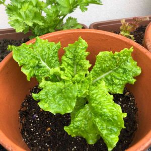 サンチュ込み合って来たので間引きしました。凄く大きくなるからこのプランターだと最終3株なのかな?まだ虫食いはほとんど無いけど、いつ来るのかドキドキです。