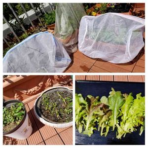 葉物野菜がカブラハバチの幼虫の襲撃を受け次々と食い尽くされています⤵なのでレタスは襲撃にあう前に収穫。3匹発見しました。クレソンはほぼ全滅。洗濯ネットの中に避難‼