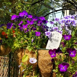 昨日家の中から撮ったハンギングバスケットを今日は庭からパチリ😄 ☔の後だからイキイキピカピカですね💜💟🧡☘️✨