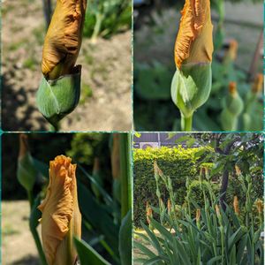 月桂樹の木の下に植えている、 ジャーマンアイリス。 もう少しで、咲きそう🌿🧡🧡