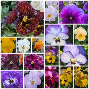 鉢植えのビオラ全開です 鉢の中にはウインティーライムグリーンとサクラが咲いています ☘️💛🤍💚🩷