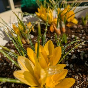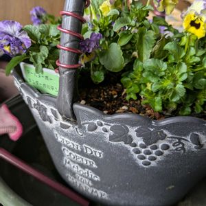 1枚目、我が家の庭に植えたヒヤシンスです🪻🪻✨✨ まだ芽が出たばかりでお花は咲いていません🪻✨👍 これからお花が咲くのが楽しみです😆🪻✨ 2枚目、総合運動公園内をサイクリングをしていたら、シダーローズが置いてありました😆👍✨ どこかのお子さんが置いたのかな? 並んで置いてありました😆😆✨✨