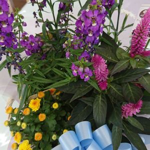 今日 元気に80才を迎えました🙂 久しぶりに帰省した孫と一緒に餃子作りをしました😆🎶 こちらの花籠💐は近くに住む娘より。。。💝