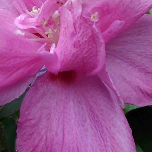 夏の陽射しに映えてる木槿😃 ハイビスカス🌺と親戚ですって😃 アレ❓真珠❓ そして花びら、イッセイミヤケ~✨