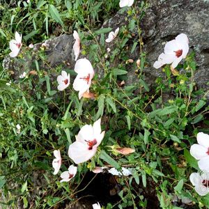 ムクゲ ☔が続き風が吹いた時倒れそうになったままですが、土手が硬くて支柱も刺さらず… それでもたくさん咲きました