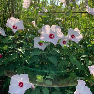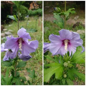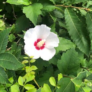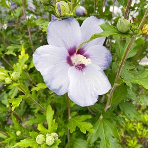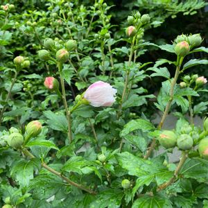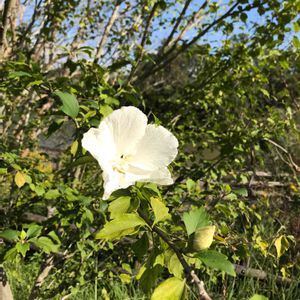 今日は雨なので先日撮ったむくげ 満開🤍 青いむくげは大きなネムノキのせいで日陰になっててまだ咲かない。