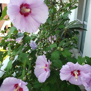 ベランダのムクゲの花が次々に咲いてきました❗ 今年はちゃんと肥料もあげたのでスゴい勢いです☺️