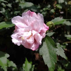 木槿(むくげ) 一重と二重の花が、同じ木で咲いてます‼️ とても綺麗なピンクの花びらを撮っていたら ほとんどが一重なのに、八重になりかけてる花🌸が⁉️
