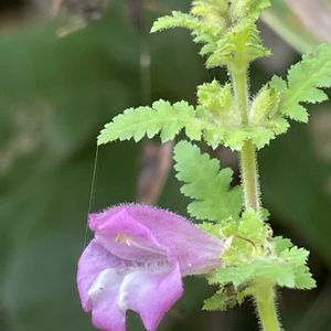 コシオガマ(小塩竈) ハマウツボ科 コシオガマ属の一年草 在来種 北海道 本州 四国に自生 半寄生植物。 生育地:低山の日当たりのよい草地 花期:9ー10月 ○ 💕立ち姿も色も優しく、全体を覆う腺毛も可愛いー🥰 茎は直立し、多少枝分かれし、高さは20-70cmになる。 全体にやわらかな曲がった腺毛が密に生え、さわるとベタつく。 葉は対生し、3角状卵形で羽状に深く裂け、裂片はさらに不規則に裂け、縁にはとがった鋸歯がある。 枝の上部の葉腋ごとに1個の花をつける。 萼は鐘形で5裂し、裂片は長楕円形の葉状で、縁にとがった鋸歯がある。 萼にも密に腺毛が生え、花時の大きさは長さ、幅ともに1-6mm、果時には長さ、幅ともに10mmになる。 花冠は淡紅紫黄色で、長さ2cmほどになり、太い筒状で先は2裂して唇形になる。 上唇は浅く2裂して縁が外側に反り返り、下唇は上唇より長く、横に大きく広がり3裂する。 花冠外面に軟毛と腺毛が生え、下唇裂片の中央のふくらみ部に白い毛が生える。 雄蕊は花冠の上唇内に4個あり、下側2本がやや長い。 果実は長さ10mm、幅5mmになる。