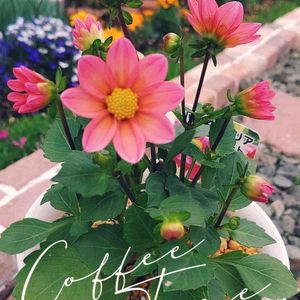 イマイチお天気怪しいモコ地方です☁️👻🌂✋ お迎えした時は🌼1コだったけど、いっぱいの蕾がポンポン咲いてくれてます😲✴️ 名前の通り沢山🌼咲くんだろうな🎵楽しみ倍増💕 …色違いの赤は成長やや遅く🌼1コだけなので🖼️pic無し😝✋ こんな小さなダリアの存在を知らなかったので、お店で見つけてLUCKY💕でした😍✌️