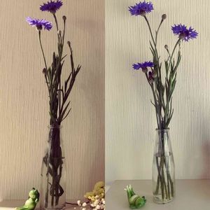 左が昨夜。.*🌙 右が今朝*°♪🌱 なんとも言えない青💙 ファイブミニの空き瓶🫢