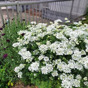 サカタのタネさんのミックスフラワーガーデンの種から矢車菊が咲きました🌸 先に咲いていたかすみ草も満開でキレイです♥