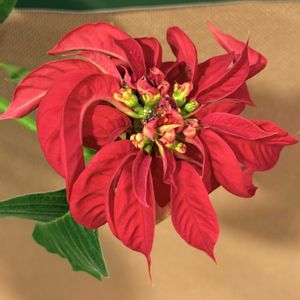 「ポインセチア’フレーミング・スフェア’」 1950年に作出された品種で、京都府立植物園で最も古い品種だそうですねー(75年前作出) 京都府立植物園温室2025/12/7 ポインセチア展開催中