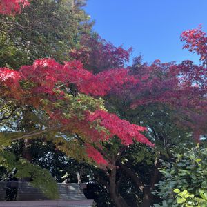 こんばんは🤗 神社のもみじ🍁が真っ赤〜青空に映えてとっても綺麗でした😍