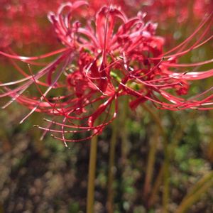 御苑の玉藻池付近で出逢えた、「曼珠沙華(マンジュシャゲ)」でおはようございます❣️ 強く反り返った真っ赤な花弁の隙間から伸びる、優美な曲線の雄蕊の雰囲気が好きです🥰 https://fng.or.jp/shinjuku/place/garden/ "曼珠沙華"は、中国原産のヒガンバナ科の球根植物🇨🇳 日本へは、稲作の伝来とともに渡来した帰化植物🌾🇯🇵 秋の代表花の一つですが、"曼珠沙華"という名前は、サンスクリット語で、"観る者の心を柔軟にする花"や、"おめでたいことが起こる兆しには、赤い花が天から降ってくる"という、縁起の良い仏教の経典に由来する高貴な意味合いのある花でもあることも分かりました🍃🌈🕊️✨ 岸辺の散策では、別の角度からジーッと一点を凝視する川鵜とも出逢えました。 私のようにのんびりと曼珠沙華を眺めていたのではなく、時折川面にピチピチと飛び跳ねる、小さな獲物を狙っての緊張感ある佇まいではありましたが…😆🎣🦤 …'緊張感"といえば、固唾を呑みながら見守った昨夕の自民党総裁選🗳️✨ 1955年自民党結党以来、初の女性総裁に高市早苗氏が選ばれました。 「早苗有れば憂い無し」節が、民意と共鳴しながら有言実行されますように🙏💓🇯🇵 ー別名は、「彼岸花(ヒガンバナ)」。 ー花言葉は、「独立」、「再会」…他。