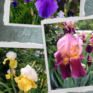 アイリスが咲き揃いました🥰 ① ジャーマンアイリス💙🤍🧡🤍💜 バイカラーがお気に入りです🎶 ② ダッチアイリス、毎年増えています🤗