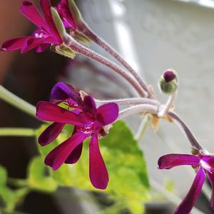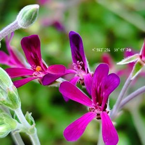 ペラルゴニウム💜シドイデス 今年も暴れています 伸びた先に花が咲き、その先にまたツボミがつくので切り時がわからずどんどん伸びていく、、、そして葉っぱはこの時期バッタに喰われてボロボロです💦 お花だけだとこんなに可愛いのに!😆