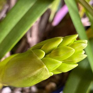 おはよう☀ シンビさん、蕾まだ硬し。🤣 でも、ワクワク💕