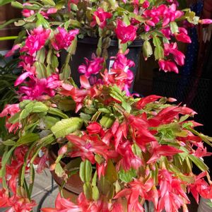 暖かい陽ざしの中 シャコバサボテンが、咲き誇ってます🎶 明日からの寒さが嘘の様、今日を楽しみます👍