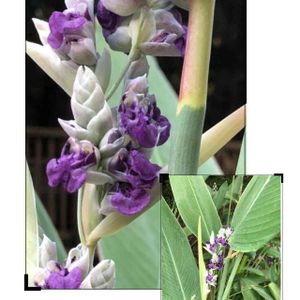 睡蓮も咲いてました♪ もう盛りは過ぎて やっと綺麗に咲いてるのみっけ! 上の植物は? 葉っぱはカンナ 調べてみてもわからず⁇ 教えて頂きました♪ ミズカンナ 🙇🏻♀️有難うございます💜