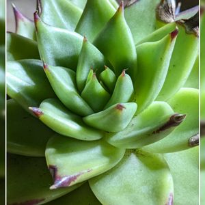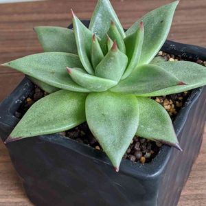 原種エボニーかな? ↘3/14と比べると大きくなったのは嬉しいのですが、かっちょいいエッジの色がどこかへ行ってしまいました💦 冬には戻るのかな😥 今はお水あまりあげないほうがいいのでしょうか?好きな置き場所とかあるのかな? アドバイスお願いしますm(_ _)m