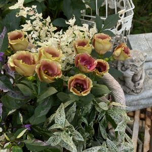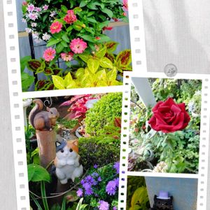 ❶切戻したペチュニアが復活して咲き出しました🪴 ❷栄養系コリウスとペルシカリア、斑入りアロマティカスの寄植えがモリモリです🌿 ❸栄養系コリウスと薔薇レスポワールなど全て挿し穂の寄植えです