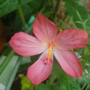 おはようございます。 我が家の庭の隅に咲いていました。 こぼれ種です。 ハイビスカスに にています。