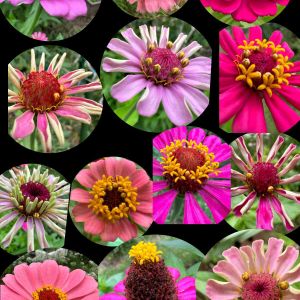 ぜ〜んぶ百日草 庭の花壇と菜園のあちこちに、通路になってる芝生にまでも、春にかなり抜き捨てましたが30本ほど育てています。 草丈1メートルほどに成り、次々に蕾を付けて咲き、長い間切り花としても助けられています☺️ なので、百日草に感謝して全ての花色と咲き方を🤳パシャパシャしました♪ 3年前に、八重咲きの種を蒔きました。 その年は一重咲きは無かったのですが、今はほぼ一重咲きになりました‼️ どれもピンクですが色合いが違って、どれも可愛い花です! 咲き始めから終わりまで楽しんでいます♪