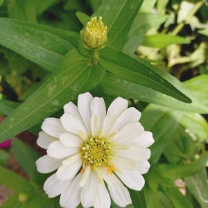 散歩道のお花 白いジニア蕾も可愛い✨🤍 花瓶のお花小さいワレモコウが見えます✨💜 🏷️金曜日の蕾たち 🏷️今日のお花 🏷️純白マニア 🏷️紫の花 に参加します🎵