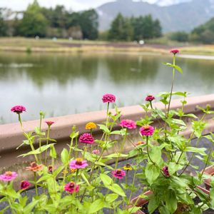 久しぶりの散歩で出会ったお花 1 ご近所さんのシュウメイギクが今年も満開です💗 2 観光施設のジニアは、そろそろ見納めかな🤔 3 道路脇のツルイタドリも、大豊作?