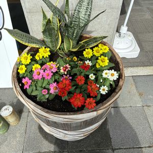 ❶我が家の植物達🌿 ❷ジニア、アスターなどのハンキング🪴その後 蕾だったジニアが咲き出しました ❸宿根アスターも次々と咲き出してます🌼 剪定した切り株に小物を飾ってます🪵 ❹5年目の秋明菊も株が増えて咲き出しました🌼 ❺5年目のガーデンマムが蕾が出来て、これから沢山咲きそうです🤗🌿