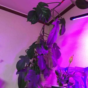 フィロデンドロンさん 大きくなり過ぎて、大きな鉢に植え替えたら、重すぎて吊るす事ができなくなったので、上に伸ばしたら、天井につきそうなので、横には支柱を向けたら、こんな格好にはなりました💗